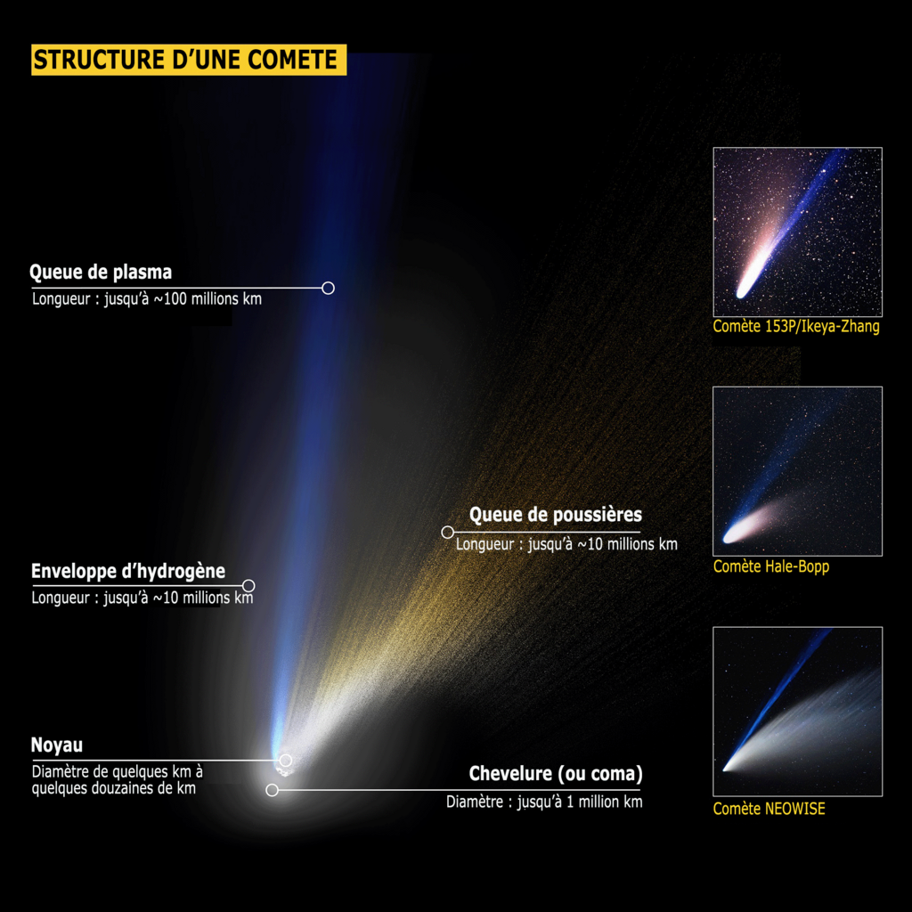 Activitatea cometară, adică dezvoltarea unei atmosfere subțiri care înconjoară nucleul solid, este caracteristica ce distinge cometele de celelalte corpuri mici din sistemul solar. Dezvoltarea acestei atmosfere subțiri se datorează sublimării gheții conținute în nucleu. Această sublimare este provocată de încălzirea nucleului atunci când acesta se apropie de Soare. Astfel, când cometele se află la câteva unități astronomice de Soare, se observă diferite structuri mari: